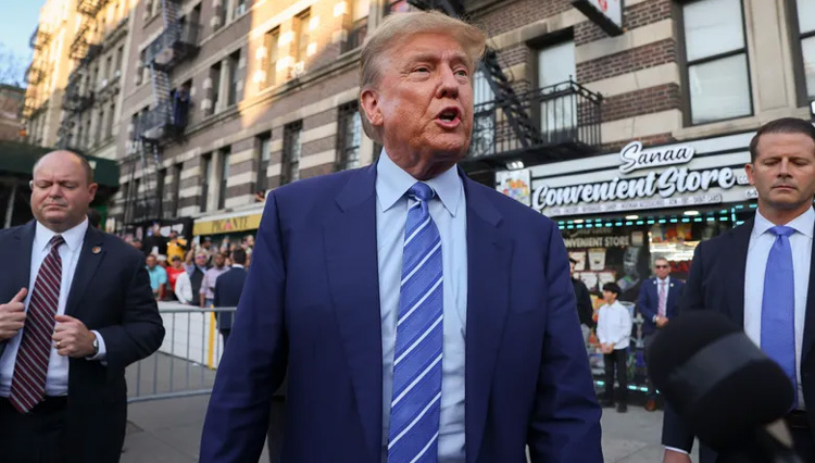 Trump goes from court to campaign at a bodega in his heavily Democratic hometown