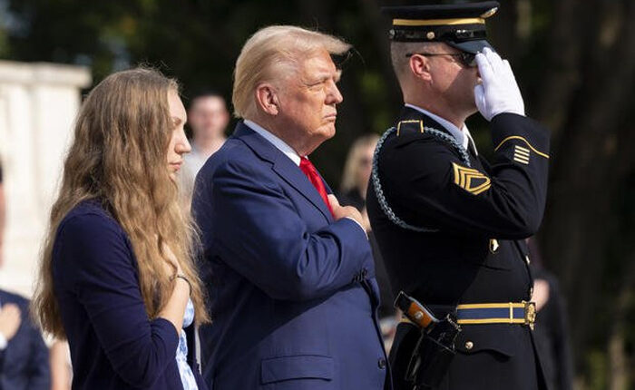 Trump’s appearance ballooned into controversy after defense officials said his campaign was warned about not taking photographs and that there was an altercation between Trump aides and a cemetery employee. Officials have said since that an employee whom two Trump campaign staff members allegedly “verbally abused and pushed” aside has declined to press charges.