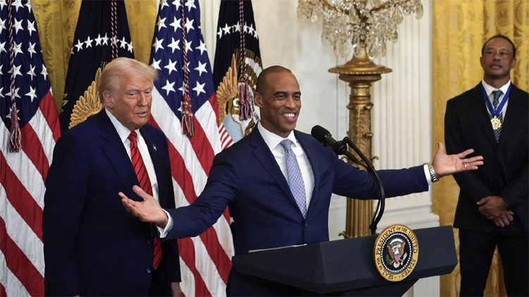The event was attended by several high-profile figures, including professional golfer Tiger Woods, Sen. Tim Scott (R-S.C.), and former Kentucky Attorney General Daniel Cameron. Trump jokingly remarked that a statue of Woods would be “saved for another time.”