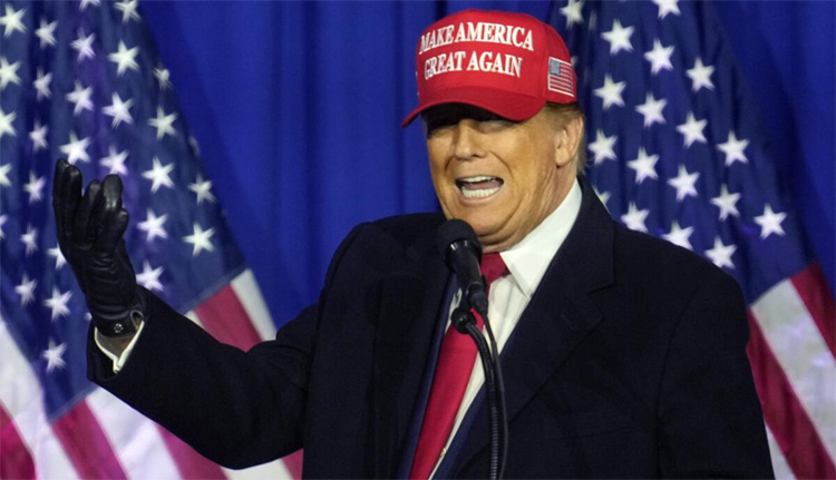 Former President Donald Trump railed against the judge who slapped him with a $355 million fine in his New York civil fraud trial and went after the long list of prosecutors with cases against him as he campaigned in Michigan Saturday night while facing penalties that, with interest, could exceed half-a-billion dollars.