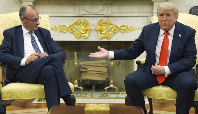 Trump and Merz began by exchanging pleasantries — Merz gave Trump a gold-framed birth certificate of the US president’s grandfather Friedrich Trump, who emigrated to America from Kallstadt, Germany, and Trump called the chancellor a “very good man to deal with.”