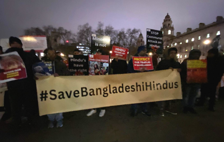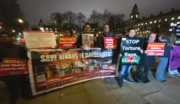 Hindus in the United Kingdom rallied outside the British Parliament in Westminster, London, to protest against the systematic genocide and persecution of Hindus in Bangladesh.