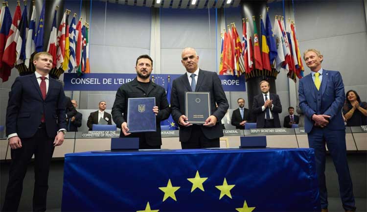 Ukrainian President Volodymyr Zelensky and Council of Europe Secretary General Alain Berset signed the accord at the Council’s headquarters in Strasbourg, France.