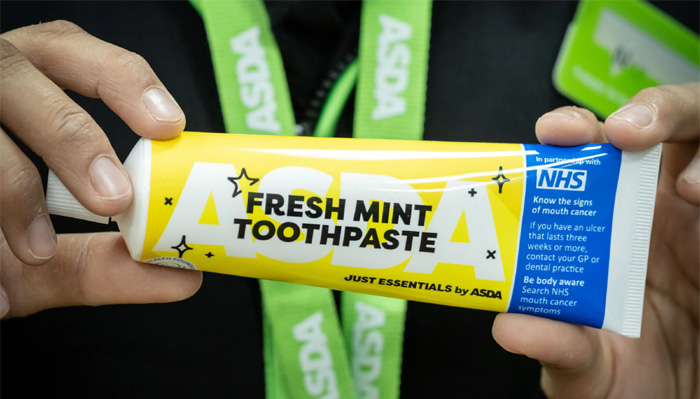 Starting in July, Asda’s branded oral hygiene products in over 500 stores across the country will feature NHS advice on the symptoms to watch out for.