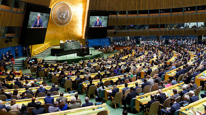 The Israeli Mission to the UN filmed Israel’s Permanent Representative to the UN, Gilad Erdan receiving the formal notification on Friday from Guterres’s chief of staff.