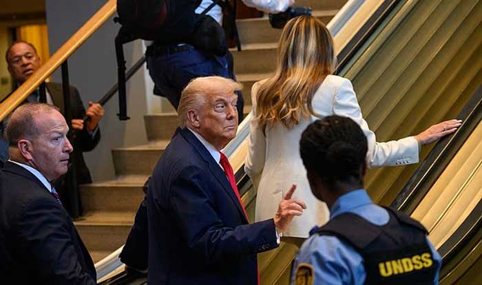Trump later joked about the incident in his address to the UN General Assembly, quipping that the organization had given him “a bad escalator and a bad teleprompter,” drawing laughter from delegates.