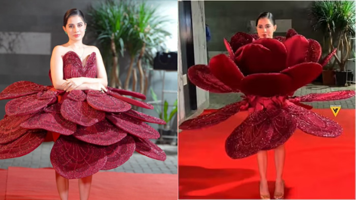 The video gives a glimpse into the making of the dress. According to Uorfi, the concept behind the ensemble was ‘Blooming rose’. She wanted to show a bud that blooms into a flower with embroidered petals. Uorfi revealed that she and her team put a lot of effort into making the ensemble. “We had very little time, all the work was finalised at the last moment, so we worked day and night. I had also done embroidery on it so that when light falls on it and it opens, it shines really well,” she said in the clip.