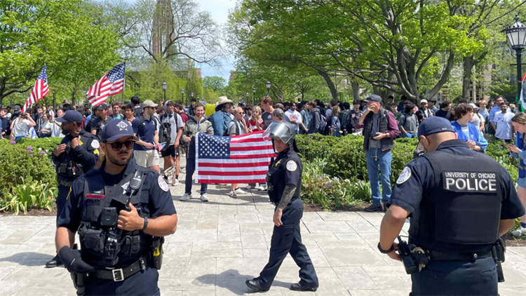 At the University of Chicago, law enforcement appeared set to dismantle an encampment Friday after the school’s president said talks with protesters on a compromise had failed.