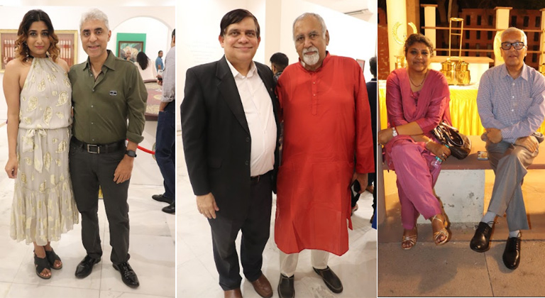 Ms Lavina Bhatia, owner of hotel Hilton Garden Inn in Gurugram, Aseem Chawla, owner of a law firm, Mr. Daniel and his wife. He is the Director of BMW India, after-sales and customer care, Ms. Maya from the Embassy of Israel, Sameer Advani, owner of Bercos, Bharat Gupta and his wife, owner of MGF group, Dr. Neel Shah Apollo hospital, Payal Verma owner of Passage Art Gallery, Sanjiv Varma owner of Lokayuta Gallery, Ritu Rakheja, Shraddha Madan, Seema and Shrikant, Artist’s family and friends, Ashu Gupta and several other guests. Attendance was approx 150 guests.