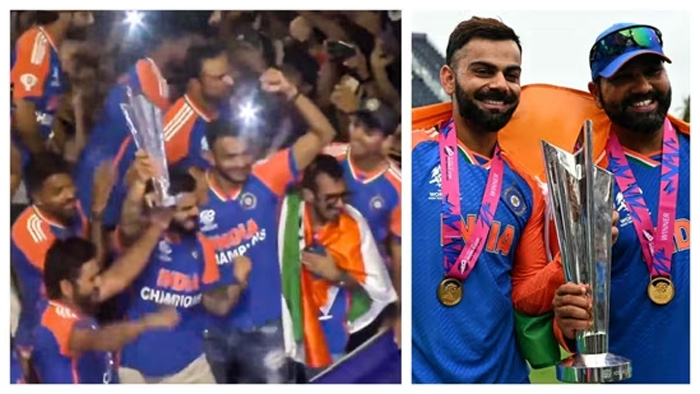 Giving Team India fans an internet-beaking moment during the victory parade in Mumbai on Thursday, Virat Kohli warmly embraced his longtime teammate Rohit Sharma as the duo lifted the ICC T20 World Cup trophy.