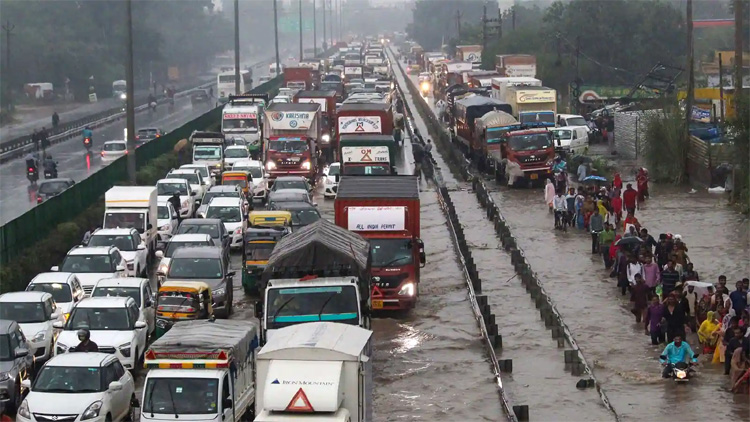 Waterlogging on Delhi-Gurugram Expressway causes traffic jams