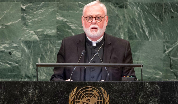 The Holy See was represented by Archbishop Paul Richard Gallagher, secretary of relations with states, who said: “We’re living at a crucial moment for humanity, in which peace seems to give way to war. Conflicts are growing and stability is increasingly put at risk.”